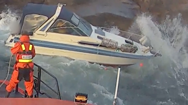 | | |   |  |  |  | En frivillig sjöräddare hoppar i vattnet för att rädda personen. |  |