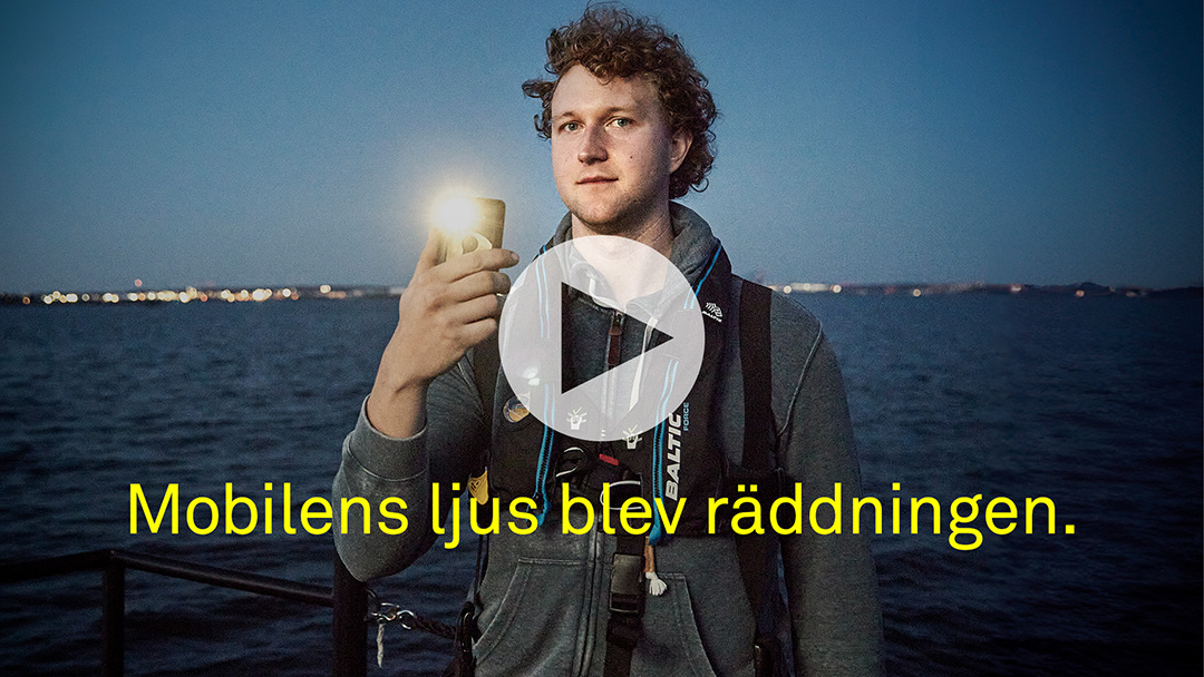|  |  |  | Efter grundstötningen sjönk båten. Från det kalla vattnet höll Morgan upp mobilen med ficklampan tänd för att synas. Ljuset gjorde att de frivilliga sjöräddarna kunde hitta honom och rädda hans liv.